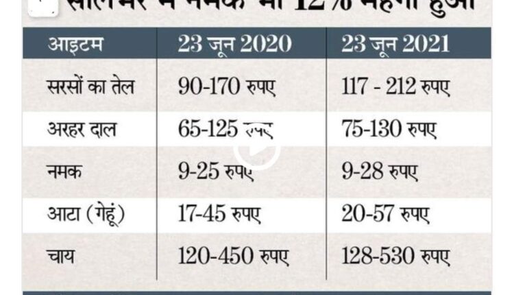कोरोना महामारी के दौरान बढ़ती महंगाई से आम लोगों पर दोहरी मार पड़ रही है। रोजमर्रा के लिए इस्तेमाल होने वाली चीजों के दाम सालभर पहले की तुलना में 25% बढ़ गए हैं। इससे आटा, दाल, तेल समेत नमक और दूध जैसे आइटम के भाव 3 से 80 रुपए बढ़ गए हैं। हालांकि, जानकार मान रहे हैं कि बढ़ती महंगाई से लोगों को अगस्त तक राहत मिलने की उम्मीद है। क्योंकि अच्छे मानसून के साथ लॉकडाउन में मिल रही रियायतों का भी फायदा मिलेगा।