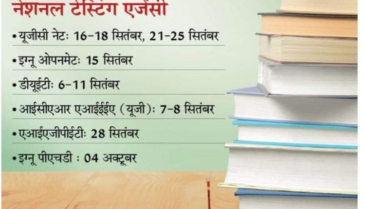 आ गई बड़ी परीक्षाओं की तारीख:नेशनल टेस्टिंग एजेंसी ने जारी की UGC- NET समेत 7 एंट्रेंस एग्जाम की तारीख, 6 सितंबर से 4 अक्टूबर के बीच कराई जाएंगी सभी परीक्षाएं