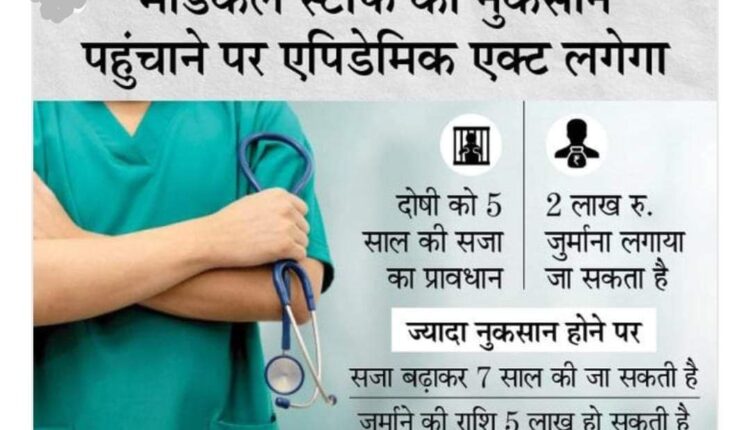 एपिडेमिक एक्ट (महामारी अधिनियम) के तहत यदि किसी व्यक्ति को मेडिकल स्टॉफ से हिंसा करने का दोषी पाया जाता है तो उसे 5 साल की सजा हो सकती है। सजा पाने वाले व्यक्ति पर 2 लाख रुपए का जुर्माना भी लागाया जा सकता है। इसे पीड़ित को पहुंचे नुकसान के हिसाब से बढ़ाया भी जा सकता है। ज्यादा नुकसान होने पर सजा को बढ़ाकर 7 साल किया जा सकता है। इसमें जुर्माने की रकम बढ़कर 5 लाख रुपए हो जाती है। इसे गंभीर अपराध माना जाता है और सजा मिलने पर जमानत की गुंजाइश नहीं होती है।