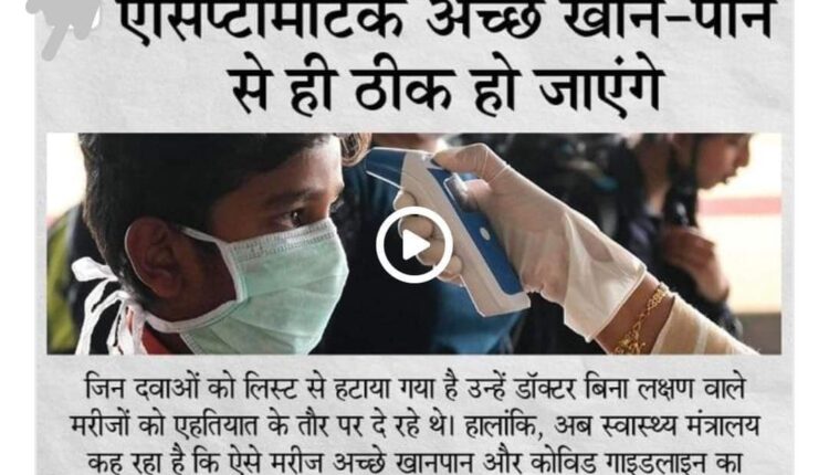 कोरोना इलाज की नई गाइडलाइन:बगैर लक्षण वाले मरीजों को अब दवा की जरूरत नहीं, सरकार का दावा- सेहतमंद खाने से दोस्ती और पॉजिटिव सोच से हो जाएंगे रिकवर