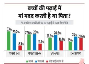 असर रिपोर्ट इस बार टेलीफोनिक सर्वे के आधार पर बनी है। इसमें जो बच्चे शामिल रहे, उनसे पूछा गया कि उन्हें पढ़ाई में मदद कौन कर रहा है? ज्यादातर के जवाब उनकी क्लास के अनुसार आए। छोटी क्लास में मां की मदद ज्यादा रही तो बढ़ती क्लास के साथ पिता और बड़े भाई-बहन की मदद बढ़ गई। ऐसे में एक बड़ा तबका यह भी बताने वाला था कि परिवार में उन्हें पढ़ाई में कोई मदद नहीं करता और ऐसे बच्चों का प्रतिशत बढ़ती क्लास के अनुसार 16.5% से 31.7% तक पहुंच गया। स्कूल बंद होने का सबसे ज्यादा नुकसान ऐसे बच्चों को ही हो रहा है।