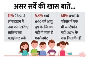 एनुअल स्टेटस ऑफ एजुकेशन रिपोर्ट (ASER या असर) 2020 में इस बार कोरोना का देशभर में पढ़ाई पर असर जानने की कोशिश की गई है। रिपोर्ट में कुछ चौंकाने वाले तो कुछ चिंताजनक तस्वीर पेश करने वाले आंकड़े सामने आए हैं। रिपोर्ट कहती है कि 11% परिवारों ने लॉकडाउन के दौरान नए फोन खरीदे। इनमें भी 80% ने स्मार्टफोन खरीदे, ताकि घर पर बच्चे पढ़ाई कर सकें। जिन परिवारों के पास स्मार्टफोन नहीं हैं, उनमें से भी 13% ने कहा कि उनके बच्चे किसी और का स्मार्टफोन इस्तेमाल करते हैं।