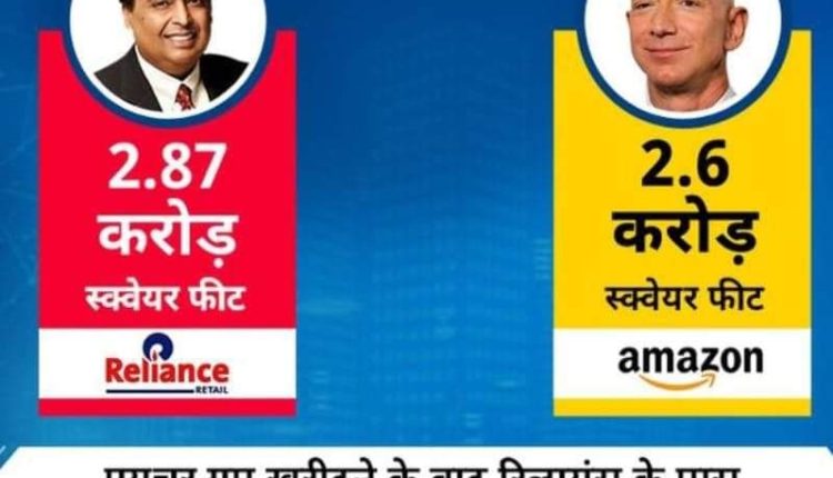 • रिलायंस रिटेल के लिए ई-कॉमर्स सेगमेंट में सबसे बड़ा काम्पिटीटर अमेजन है। अमेजन इंडिया के पास 13 शहरों में 2.6 करोड़ स्क्वेयर फीट का स्पेस है, जिसका इस्तेमाल डिलीवरी सेंटर के रूप में किया जाता है।