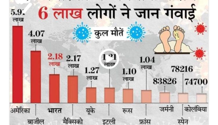भारत दुनिया का तीसरा देश जहां सबसे ज्यादा मौतें