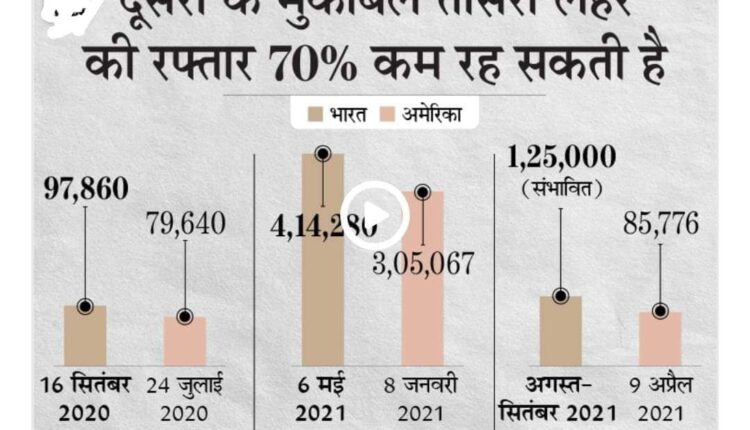 देश में कैसी होगी कोरोना की तीसरी लहर:US में दूसरा पीक 3.5 लाख केस तक गया था, तीसरी लहर में यह 85 हजार हो गया; यही ट्रेंड भारत में भी रहा तो यहां सवा लाख तक केस आएंगे