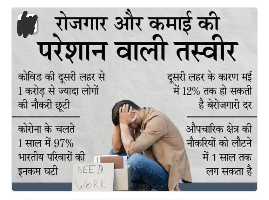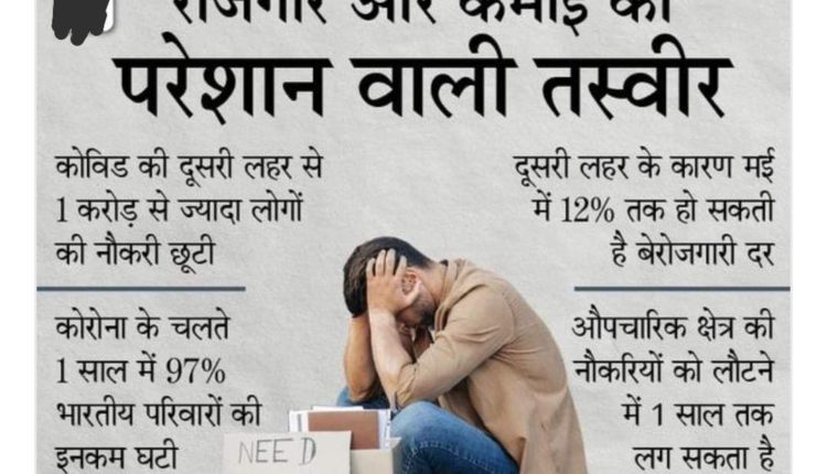देश में कोविड की दूसरी लहर का असर:1 करोड़ से ज्यादा लोग बेरोजगार हुए; 97% परिवारों की कमाई घटी; अच्छी नौकरियां मिलने में एक साल लग जाएगा