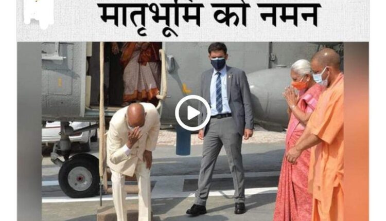 पैतृक गांव पहुंचकर भावुक हुए राष्ट्रपति:हेलीपैड पर उतरते ही जन्मभूमि पर नतमस्तक हुए कोविंद; बोले- सोचा नहीं था कि गांव का एक लड़का देश के सर्वोच्च पद पर पहुंचेगा