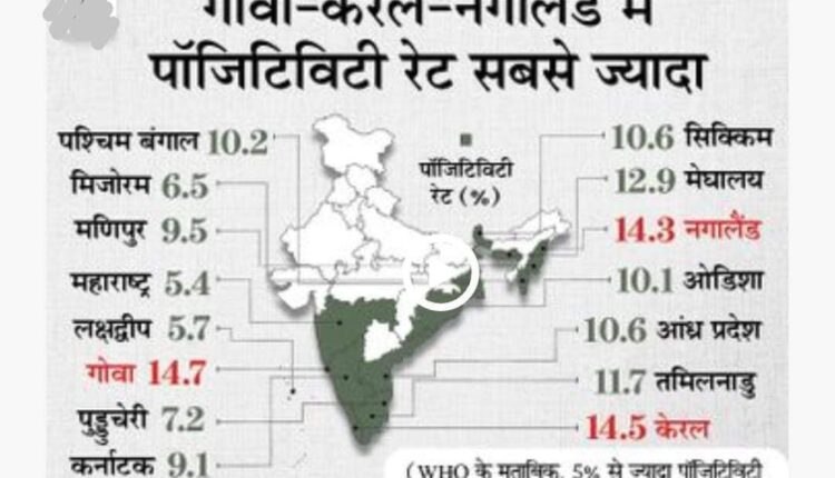 15 राज्यों में संक्रमण दर 15% से ज्यादा