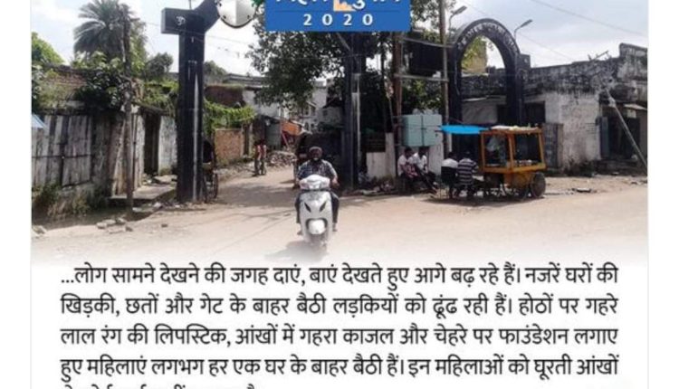 शाम के पांच-साढ़े पांच बज रहे हैं। सड़क के दोनों तरफ छोटे-छोटे मकान बने हैं। कुछ मकानों के बाहर बोर्ड लगा है और उस पर लिखा है, ‘फैमली डेरा है। बिना परमिशन अंदर आना मना है।’ वहीं कुछ घरों के बाहर टंगे बोर्ड पर लिखा है, ‘सपना कुमारी और माही कुमारी, नर्तकी एवं गायिका। प्रदर्शन रात्रि 9 बजे तक।’ सड़क उखड़ी हुई है। शायद इसी बारिश में उखड़ गई है। इस उखड़ी हुई सड़क से आने-जाने वाले लोग सामने देखने की जगह दाएं-बाएं देखते हुए आगे बढ़ रहे हैं।