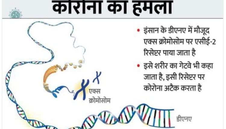 डीएनए में 1 से लेकर 22 तक क्रोमोसोम होते हैं। जिन्हें हम एक्स और वाई क्रोमोसोम के नाम से जानते हैं। इनमें से एक्स क्रोमोसोम पर एसीई-2 रिसेप्टर पाया जाता है, जिस पर ये कोरोनावायरस अटैक करता है। किसी भी जीव के डीएनए में मौजूद समस्त जीनों की चेन को जीनोम कहते हैं। यह एसीई-2 रिसेप्टर भी जीनोम का ही एक हिस्सा है।