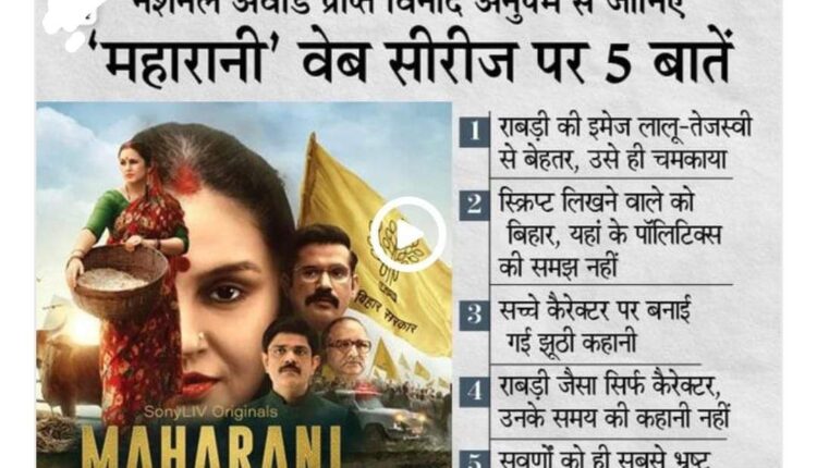 ‘महारानी’ वेब सीरीज पर नेशनल अवॉर्ड विनर की राय:विनोद अनुपम ने कहा-राबड़ी राज की इमेज बनाने, सवर्णों को नीचा दिखाने की कोशिश हुई; सभी सिंह-पांडेय-तिवारी को भ्रष्ट बताया