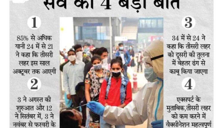 सर्वे के अनुसार 85% से अधिक यानी 24 में से 21 ने कहा कि तीसरी लहर इस साल अक्टूबर तक आएगी। इनमें से 3 ने अगस्त की शुरुआत और 12 ने सितंबर में इसके आने की संभावना जताई। बाकी 3 ने नवंबर से फरवरी के बीच इसके आने की आशंका जाहिर की।