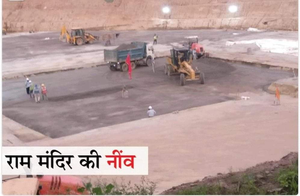 अयोध्या में श्री राम जन्मभूमि पर भव्य मंदिर निर्माण के लिए बनाई जा रही नींव की पहली बार तस्वीरें सामने आई हैं। नींव की छह लेयर तैयार हो चुकी हैं। कुल 44 लेयर बनाई जानी हैं। ताउते और यास तूफान के कारण हुई बारिश के चलते पिछले कुछ दिनों से काम बंद था, जो सोमवार से फिर शुरू हो गया। श्री राम जन्मभूमि तीर्थ क्षेत्र ट्रस्ट के महासचिव चंपत राय सोमवार को कामकाज देखने के लिए मंदिर परिसर पहुंचे। उन्होंने बताया कि यह काम अगले अगस्त महीने तक पूरा होगा।