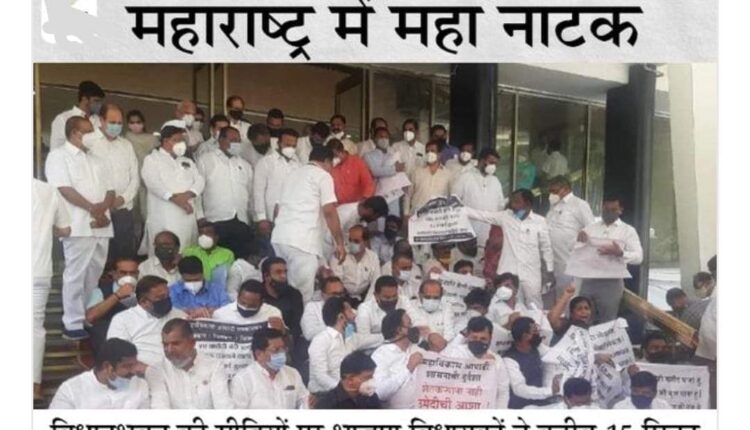 महाराष्ट्र विधानसभा का दो दिवसीय मानसूत्र सत्र सोमवार को हंगामे के साथ शुरू हुआ। इससे पहले भाजपा विधायकों ने निकाय चुनावों में आरक्षण, विधानसभा अध्यक्ष के चुनाव जल्द करवाने, MPSC परीक्षा के लिए समिति गठित करने, मराठा आरक्षण और किसानों के मुद्दे पर जमकर प्रदर्शन किया। विधानभवन की सीढ़ियों पर बैठकर भाजपा विधायक लगातार नारेबाजी करते रहे और करीब आधे घंटे बाद सदन में दाखिल हुए।