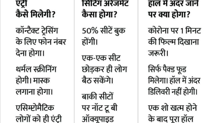 • एक शो खत्म होने के बाद पूरा हॉल सैनिटाइज होगा, फिर दूसरे शो के लिए लोग आकर बैठ सकेंगे।