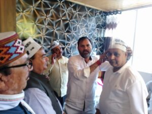 फोटो; अजय दत्त भाजपा व कांग्रेस को छोडक़र आए वर्करों का स्वागत करते हुए।