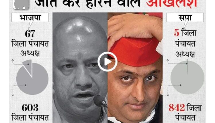 पंचायतों में हारकर जिले जीती भाजपा:75 में से 67 सीटों पर भाजपा का कब्जा; सपा को सिर्फ 5 सीटें मिलीं, 2016 में अखिलेश ने 63 जीती थीं