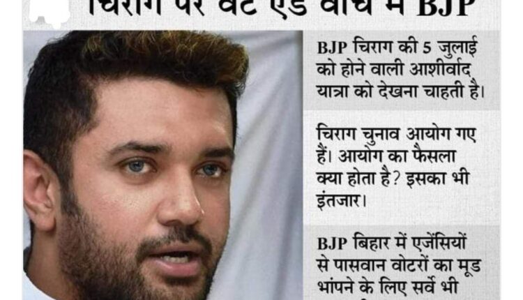 चिराग पासवान को लेकर भाजपा जमीनी आकलन करने में जुटी है। अपने संगठन के साथ ही पार्टी सर्वे एजेंसियों के जरिए भी पासवान जाति के वोटरों के मन की बात जानने में लगी है। LJP में टूट के बावजूद चिराग पासवान अपने चाचा पशुपति पारस के लिए लगातार नरमी दिखा रहे हैं।
