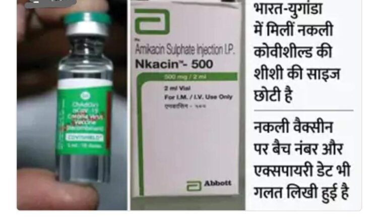 नकली और घटिया मेडिकल प्रोडक्ट्स को लेकर WHO के ग्लोबल सर्विलांस एंड मॉनिटरिंग सिस्टम ने कोवीशील्ड की नकली वैक्सीन का पता लगाया है। युगांडा में मिली नकली कोवीशील्ड की शीशी 5 ml की थी, जिसमें 10 डोज लगाने की बात कही गई थी। उस पर बैच नंबर 4121Z040 और नकली एक्सपायरी डेट 10 अगस्त लिखी हुई थी।