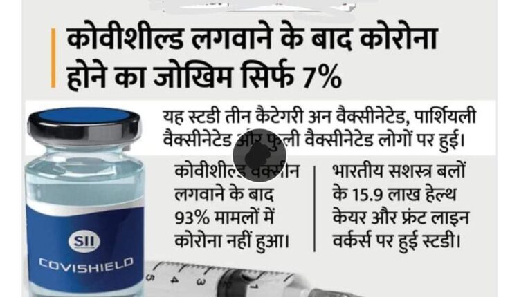 कोवीशील्ड के सामने कोरोना बेदम:दोनों डोज के बाद कोरोना होने की आशंका को 93% कम करती है कोवीशील्ड, सशस्त्र बलों पर दुनिया की सबसे बड़ी स्टडी का नतीजा