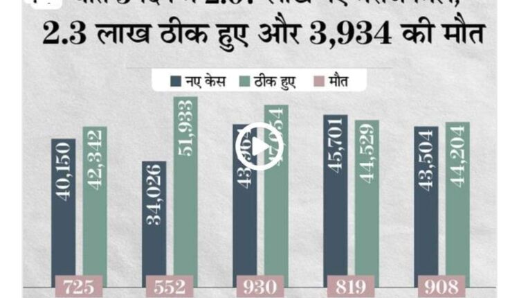 कोरोना देश में:24 घंटे में 43504 नए केस आए, 44204 मरीज ठीक हुए और 908 की मौत; महाराष्ट्र-केरल के आंकड़ों ने बढ़ाई चिंता