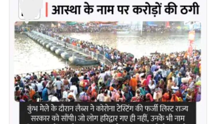 उत्तराखंड में कुंभ मेले के दौरान फर्जी कोरोना टेस्टिंग का मामला सामने आया है। ED ने शुक्रवार को इस मामले में मनी लॉन्ड्रिंग को लेकर पांच डायग्नोस्टिक फर्मों के टॉप अधिकारियों के घरों और ऑफिस की तलाशी ली। इस दौरान फर्जी बिल, लैपटॉप, मोबाइल फोन, संपत्ति के कागजात और 30.9 लाख रुपए नगद जब्त किए गए।
