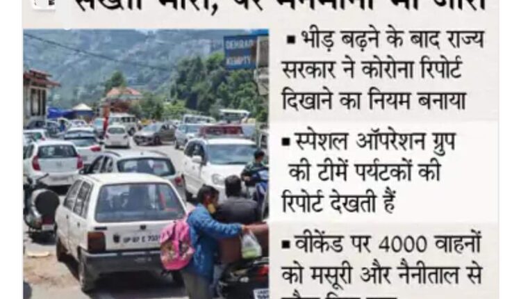 कोरोना की दूसरी लहर से देश को राहत मिलते ही पहाड़ी राज्यों में पर्यटकों की लंबी कतारें लग रही हैं। उत्तराखंड में पर्यटन स्थलों पर भारी भीड़ जुटती देख राज्य सरकार ने नियम बना दिया कि आने वाले सैलानियों को कोरोना टेस्ट की निगेटिव रिपोर्ट दिखानी होगी, लेकिन लोग हैं कि मान ही नहीं रहे।