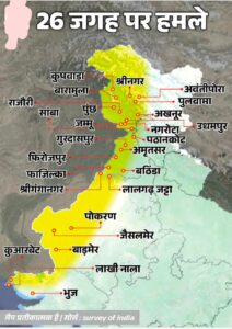 पाकिस्तान ने शुक्रवार को रात 7.47 से रात 10.57 के बीच पाकिस्तान ने जम्मू-कश्मीर, पंजाब, राजस्थान और गुजरात के 26 शहरों में 550 से ज्यादा ड्रोन दागे थे। इस हमले को भारतीय आर्मी ने नाकाम कर दिया।