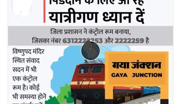 - गया आ रहे पिंडदान करने वाले यात्री रेलवे स्टेशन पर बने पुलिस कैंप, जिला प्रशासन के कैंप या फिर पंडा समाज के कैंप से संपर्क कर श्राद्ध से संबंधित जानकारी ले सकते हैं।