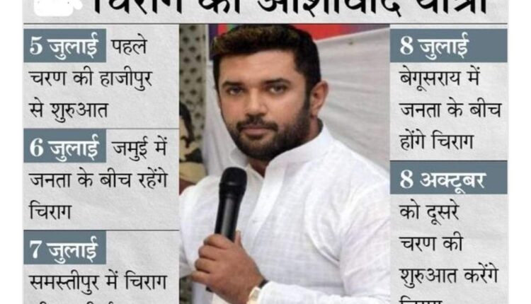 बताया जा रहा है कि दिवंगत रामविलास पासवान की जयंती पर 5 जुलाई को चिराग आशीर्वाद यात्रा निकालेंगे और पिता की पहली पुण्यतिथि पर अक्टूबर में राज्य में पदयात्रा की शुरुआत कर विपक्षियों पर हमला बोलेंगे।
