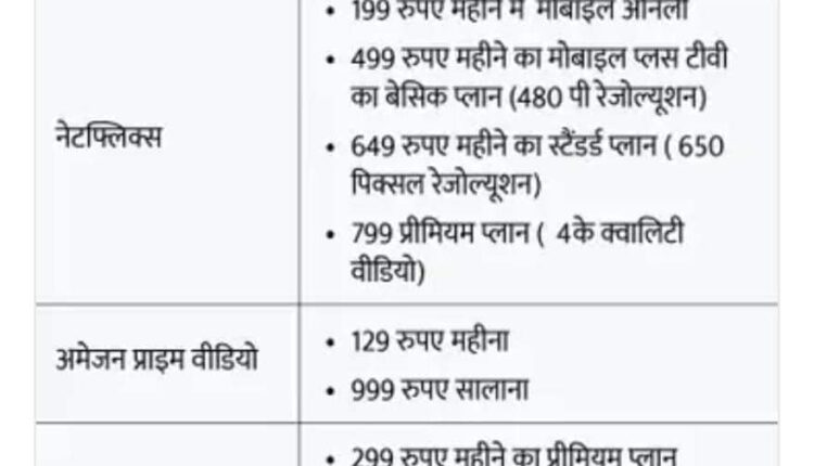 मोटे तौर पर कुछ प्रमुख OTT के प्लान इस तरह हैं…