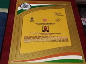 ब्रह्मकुमारियों के प्रमुख द्वारा अंतर्राष्ट्रीय प्रजापिता ब्रह्मा विश्वविद्यालय मुख्यालय माउंट आबू में आल इंडिया जरनल सेक्रेटरी मृत्युंजय भाई ने दिया सम्मान