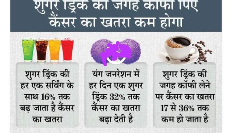 यंग जनरेशन में एक दिन में एक शुगर ड्रिंक 32 प्रतिशत तक कैंसर के खतरे को बढ़ा देती है, लेकिन इसे कॉफी के साथ रिप्लेस करने पर कैंसर का खतरा 17 से 36 प्रतिशत तक कम हो सकता है।